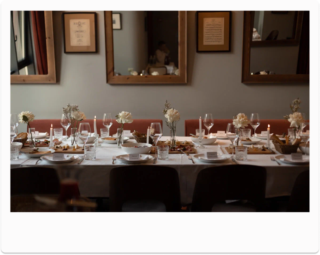 Наше единственное пожелание — в этот особенный день нам хотелось бы создать гармоничную и торжественную атмосферу, поэтому мы просим отдать предпочтение праздничным нарядам